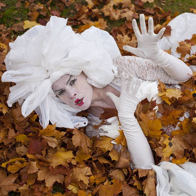 Miss Catastroph is the embodiment of disaster — a tragicomic anti-heroine operating at the intersection of clowning and visual art. She appears unexpectedly in public spaces, carrying the weight of the world and inviting the audience to reflect on the relationship between humans and nature. Constructed from plastic and performance, the character carnivalises the crises of our time with ruthless immediacy.