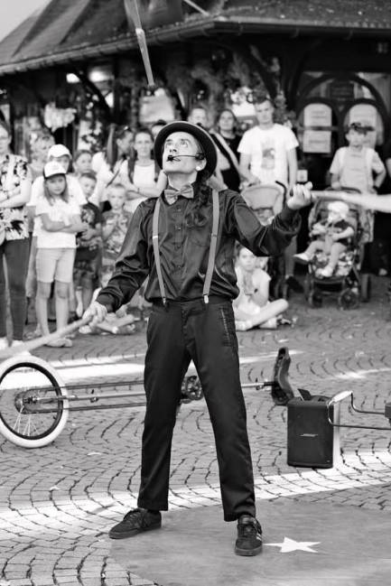Casuela Show is a high-energy, interactive street theatre and circus performance for all ages by Chilean artist Jonathan Casuela. Blending skilful juggling, comedy, and lively audience participation, the show uses continuous microphone dialogue alongside music to gather, build, and sustain a lively crowd. Featuring juggling with different props, Casuela brings audience members into the action before building momentum toward a spectacular finale!